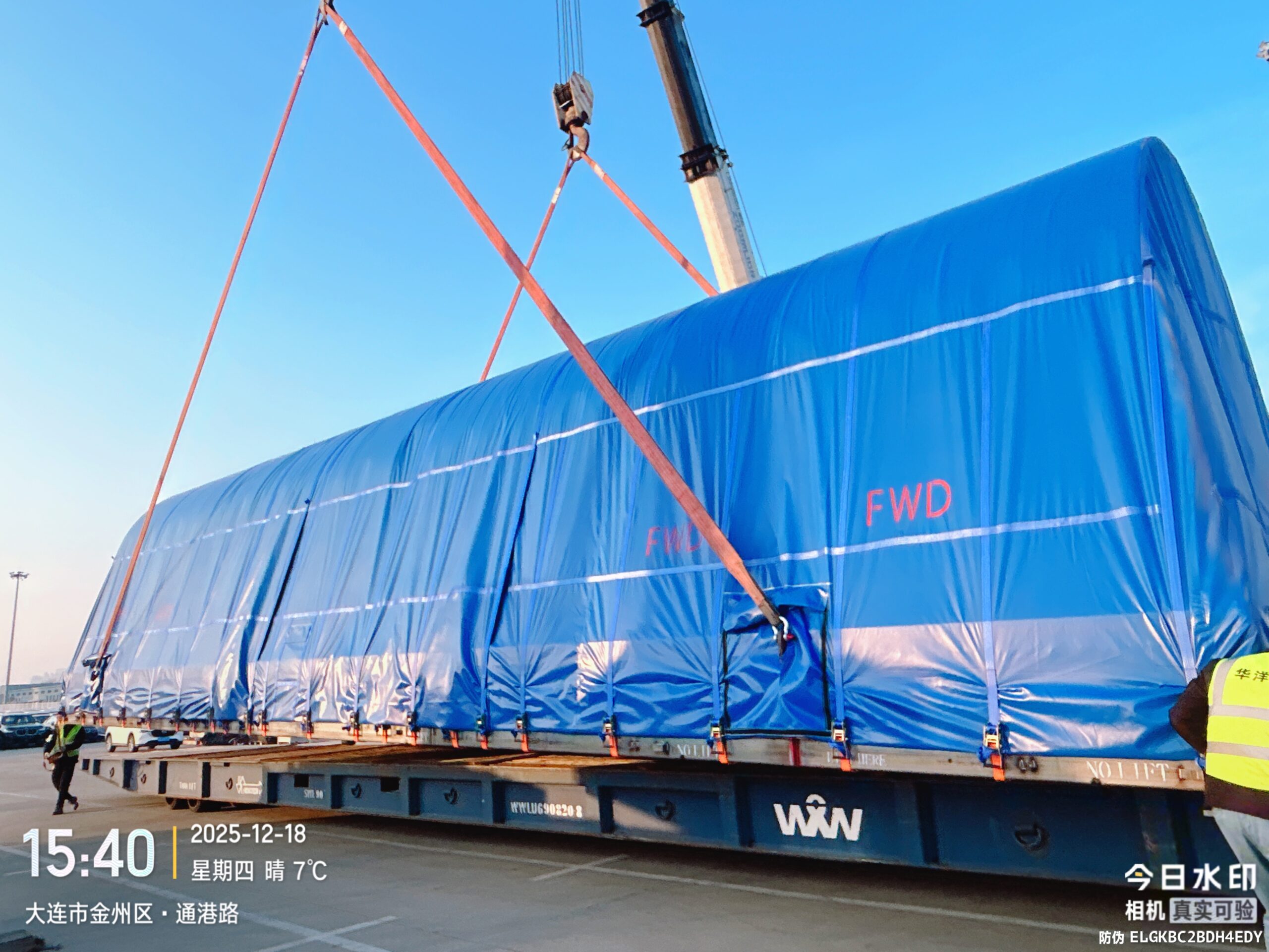 - Un transport terrestre entre l’usine de Shenyang et le port de Dalian (Chine).